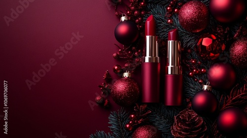 beauty, lipstick, christmas, ornament, burgundy, red, fashion, holiday, decoration, make-up, beauty product, palette, design, seasonal, topview, style, cosmetic, elegance, gift, festive, glamour, holiday season, dark, winter, luxury, celebration, christmas gift, trendy, colours, chic, festive season, red lipstick, winter fashion, stylish, party, premium