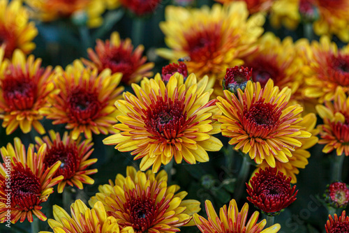 beautiful bushes of chrysanthemum flowers yellow and red colors