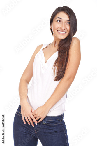 2010, 2011, adult, alone, attractive, beautiful, beauty, brunette, business, caucasian, cheerful, confident, copy space, cute, elegant, executive, fashion, female, folded, girl, gorgeous, hand, happy, human, isolated, joy, lady, lifestyle, light, looking, model, modern, natural, 1, people, person, portrait, pretty, single, smile, standing, studio, stylish, successful, trendy, white, woman, young