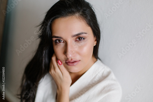 Beautiful caucasian woman is crying. Proud independent sad arab woman. Woe sadness tragedy depression loneliness divorce resentment. Brown eyes with tears. Emotional art portrait. Psychiatrist Anxiety