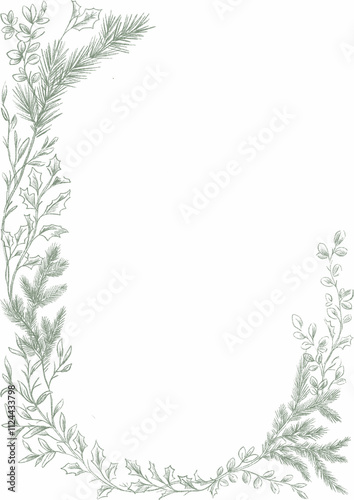 Beautiful Christmas frame in old vintage retro style. Ready to use Xmas clip art. Hand drawn new year print for invitation cards.