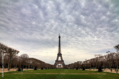 Beautiful cityscape of the Eiffel tower on a cloudy winter day in Paris