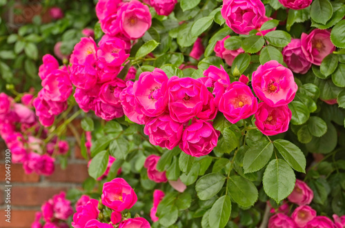 Beautiful climbing Rose Angela (Rosa Angela) is a hybrid floribunda rose cultivars ,has a fragrant soft large clusters of delicate cupped blooms in deep pink color and light pink in the center.