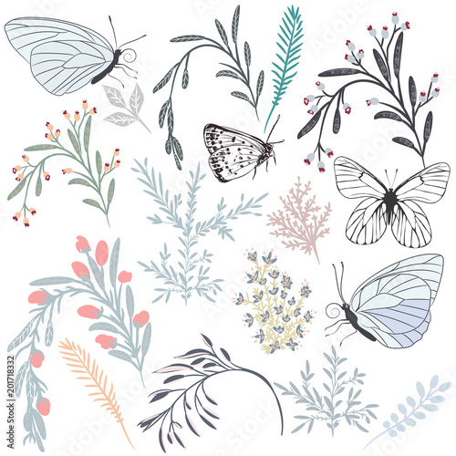 Beautiful collection of vector florals and butterflies