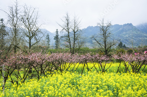 nature, scenery, sky, rural, blue, countryside, green, grass, country, landscape, horizon, environment, background, scenic, field, farm, outside, field, agriculture, season, beautiful, natural, scene, plant, weather, farming, colourful, beauty, grow, mist, fog, foggy, rain, guilin, mountain, mountain scenery, unique, painting, spring, tree, yellow