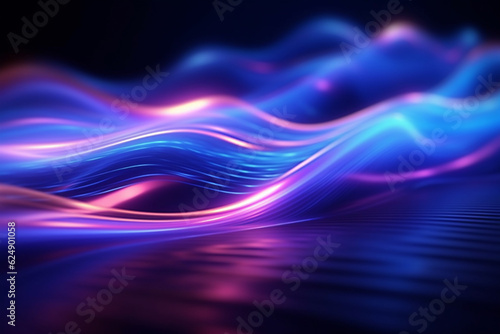 Beautiful deep blue, pink and orange abstract background with waves, new technologies, intermet, IT concept. Design element, AI generated