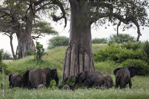 Beautiful elephants during safari in Tarangire National Park, Tanzania.