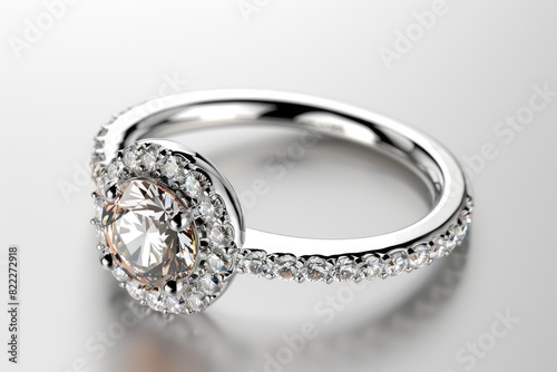 Beautiful engagement ring with a sparkling diamond on a white background
