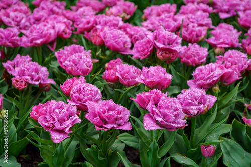Beautiful exotic tulip flowers cultivated in Netherlands garden