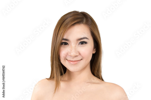 Beautiful face of young adult Asian woman isolated on white