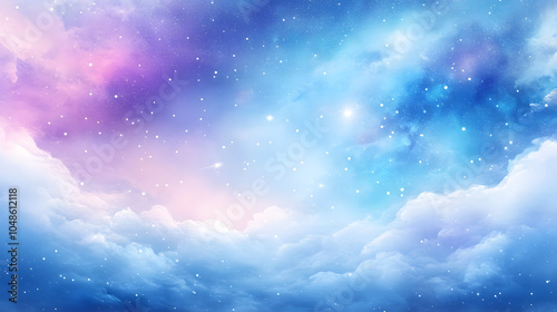 Beautiful fantasy starry night sky, blue and purple colorful, galaxy and aurora 4k wallpaper. cosmic watercolor illustration. Colorful space background with stars