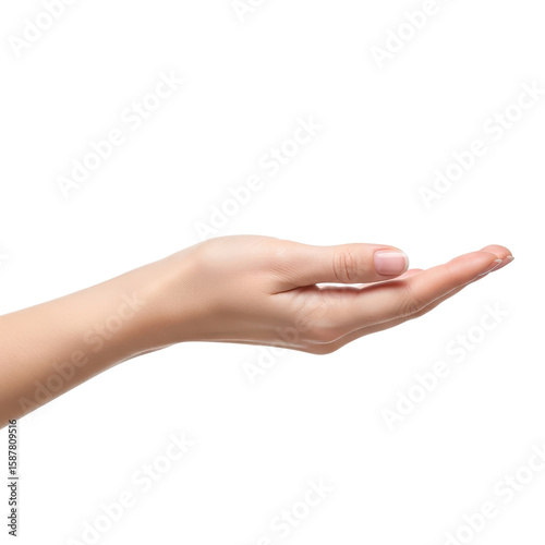 hand, isolated, female, woman, palm, open, extended, outstretched, offering, presenting, holding, empty, receiving, copy space, white background, cut-out, studio shot, gesture, beautiful, skin, beauty, commercial, advertising, product, marketing, body, human, person, clean, template, care, blank