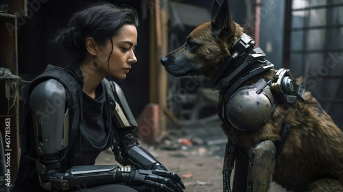 lifestyle, dog, female, robot, pet, machine, artificial, artificial intelligence, training, robotic, woman, cyber, learning, friendship, girl, together, doggy, engineering, smart, cyborg, animal, futuristic, future, purebred, camera, pedigree, work, teaching, computer, canino, friends, technology, cybernetic, body, digital, bionic, intelligence, metal, paw, bot, virtual, electronic, innovation, tech, modern