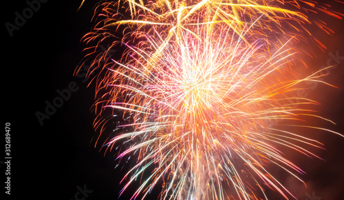 Beautiful fireworks on the black sky