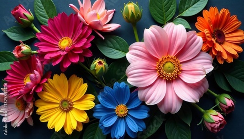 Beautiful floral arrangement showcasing striking colors and intricate textured details, vibrant, bouquet