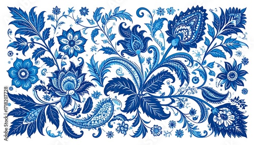 floral, pattern, design, blue, white, vintage, ornamental, decorative, intricate, elegant, art, illustration, vector, seamless, texture, background, wallpaper, fabric, textile, print, graphic, modern, classic, paisley, indian, asian, symmetry, patterned, flower, leaf, tree branch, stem, bloom, ornament, artistic, style, artwork, digital, image