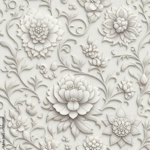 Beautiful floral elegant colorful abstract paper cut flowers embroidered fabric seamless pattern of hand drawn flowers decorative wallpaper background