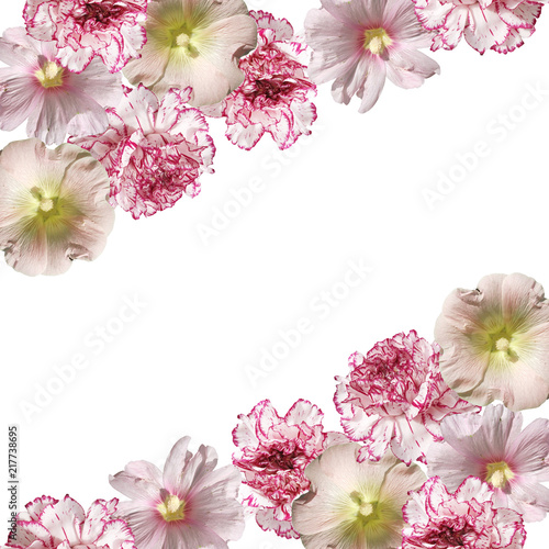 flower, macro, isolated, nature, carnation, mallow, hibiscus, white, pink, green, yellow, crimson, burgundy, black, leaf, bud, spring, may, june, summer, season, garden, bouquet, love, holiday, gift, greeting, beautiful, delicate, fragrant, pattern, design, background, collage, frame, bright, colours