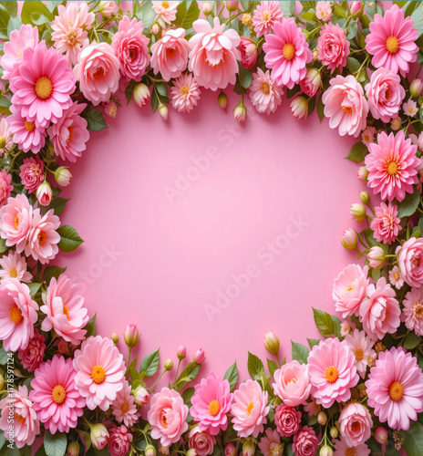 flower, frame, floral, pink, border, spring, nature, card, flower, illustration, pattern, blossom, summer, vector, decoration, design, leaf, plant, art, colours, daisy, beauty, romantic, background, celebration