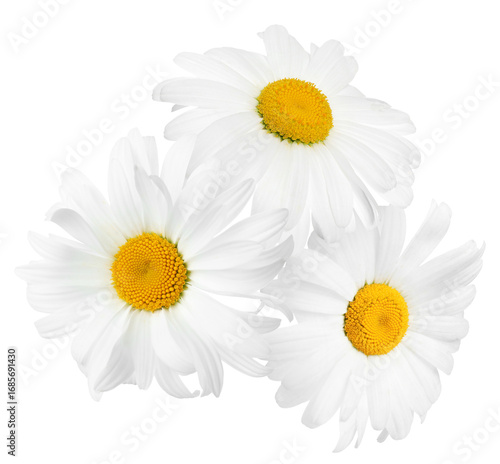 Beautiful fresh chamomile flowers isolated on white