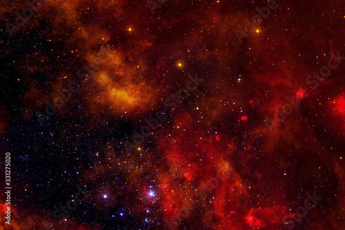 Beautiful galaxy of red color with stars. Elements of this image were furnished by NASA.