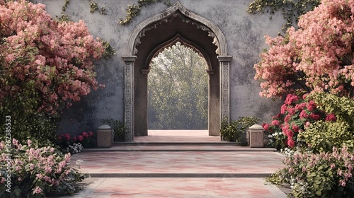 Beautiful garden archway adorned with blooming flowers in a serene outdoor setting