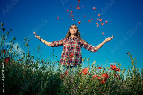 poppy field, girl, field, blue skies, summer, happy, nature, young, sky, fun, beautiful, grass, meadow, woman, freedom, beauty, people, flower, happiness, jump, spring, joy, green, blue, outdoors, smile, poppy, may, holiday, background, bloom, blossom, blur, country, daisy, day, farm, floral, fresh, garden, gardening