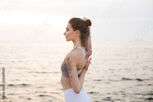 work out, portrait, tattoo, sunrise, sunset, calm, morning, athletic, exercise, relax, dreamy, modern, mental, silence, hipster, yoga, peaceful, harmony, balance, body, inspiration, inspiring, atmosphere, energy, alone, amazing, fit, sport, nature, health, wellness, healthy, lifestyle, physical exercise, ocean, fitness, beach, water, sea, gorgeous, beauty, attractive, caucasian, female, woman
