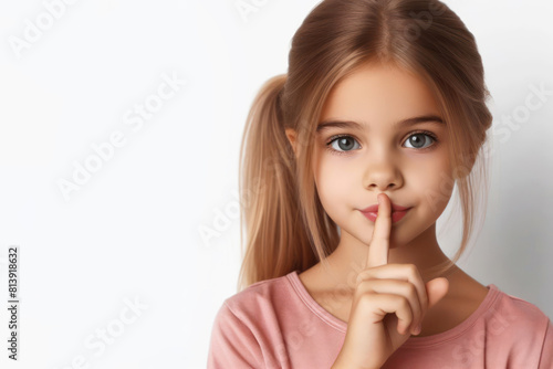 beautiful, girl, showing, white background, silence, quiet, hush, shh, mute, peaceful, serene, calm, tranquil, gesture, elegant, graceful, poised