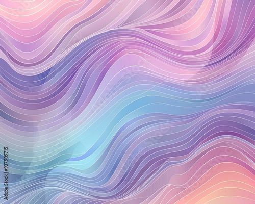 Beautiful gradient background with wavy lines, pastel blue and purple colors, Abstract wallpaper design for poster, cover, banner, flyer, greeting card, print on cloth or paper