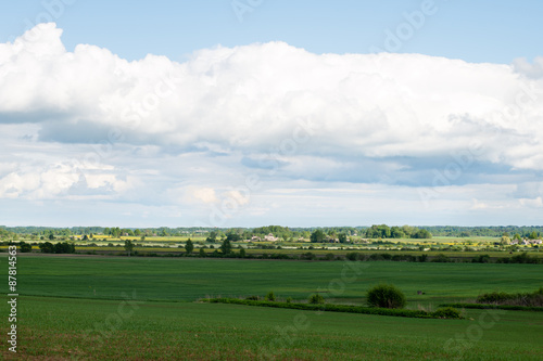 landscape, nature, tree, agriculture, beautiful, beauty, blue, cloud, cloudscape, cloudy, day, field, grass, green, growth, heaven, horizon, horizontal, lawn, line, meadow, nobody, outdoors, pasture, perspective, rape, rural, scenery, sky, southern, spring, stock, summer, sun, sunlight, sunny