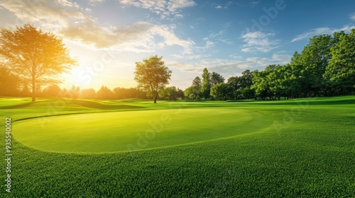 Beautiful Green Golf Course at Sunset