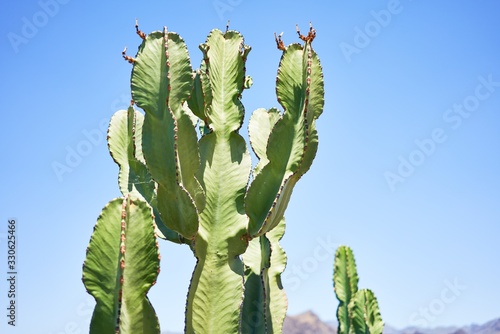 Beautiful green succulent cactus over blue sky background