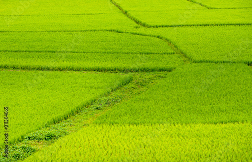 agriculture, background, beautiful, blue, bright, colours, field, food, grass, green, landscape, morning, nature, paddy, plant, rice, rice field, terraced, siam, tone