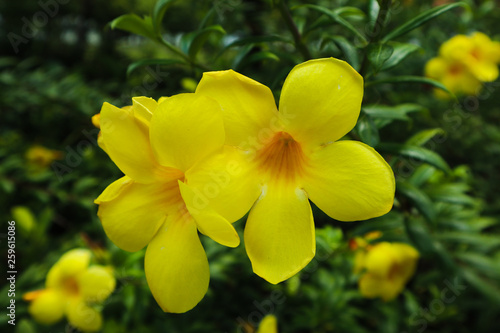 Beautiful green tree, plants, forest and flowers in the outdoor gardens