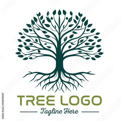 Beautiful green tree silhouette and vector design, minimalist business logo for tree icon on white background.