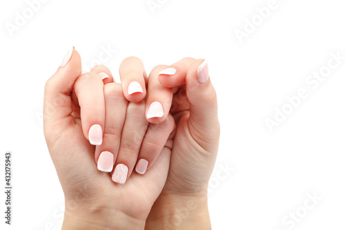 hand, manicure, isolated, finger, beauty, caucasian, white, female, young, beautiful, nail, skin, girl, background, care, palm, woman, healthy, treatment, fingernail, body, human, clean, thumb, cosmetic, spa, wrist, french, closeup, closeup, elegance, polish, fashion, glamour, person, concept, natural, purity, arm, health, gesticulate, youth, adult, woman, femininity, people, salon, skincare, design