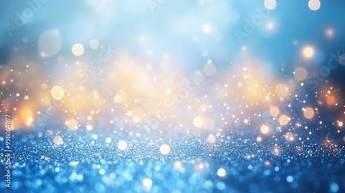 Beautiful holiday abstract light blue background with soft glowing lights and sparkles, creating a festive and serene atmosphere