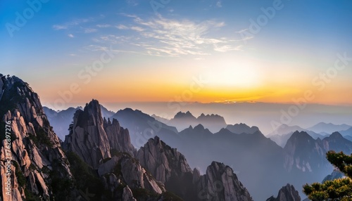 sunrise, landscape, china, nature, travel, park, scenic, hill, mountain, tour tourism, beautiful, sky, asia, background, forest, scenery, yellow, natural, peak, morning, fog, tree, summer, chinese, rock, landmark, sunset, blue, vacation, national, cloud, famous, view, pine, scene, green, destination, panorama, season, cliff, hiking, asian, vale, unesco, sun, stone
