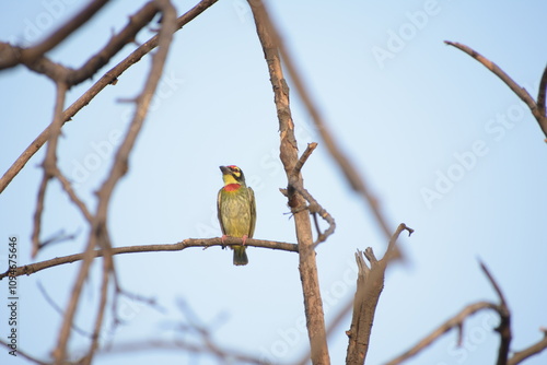 Beautiful Indian Coppersmith Barbet Soaking Sun