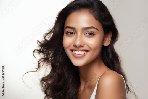 beautiful indian woman with long hair style.