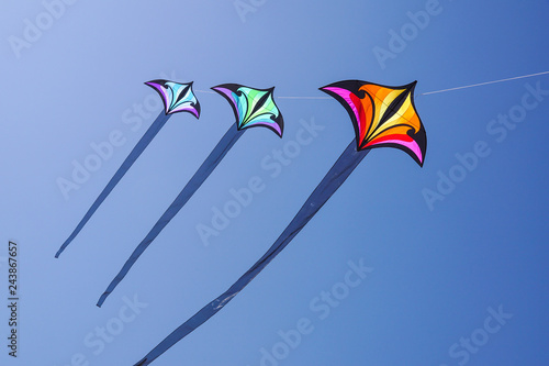 Beautiful kites in a kite festival. Blue sky