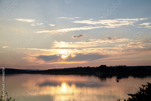 nature, ecology, natural, landscape, background, village, rural, scene, countryside, summer, leisure, warm, activity, eco, ecological, sunset, colourful, colours, vacation, recreation, meditation, relax, rest, isolate, lake, blue, yellow, water, sky, pale, sun, evening, cloud, view, duck pond, tour tourism, travel, calm, meditate, peace, mind, mood