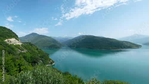 summer, landscape, beautiful, bright, green, lake, small, mountain, water, cloud, sky, bank, mountain chain, hill, grass