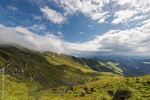 Beautiful landscape with blue cloudy sky in Rodnei mountains, Romania