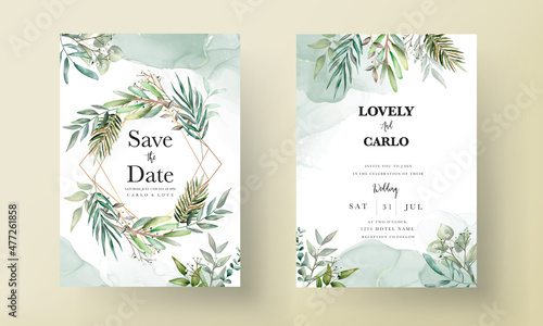 Beautiful leaves wedding invitation card template