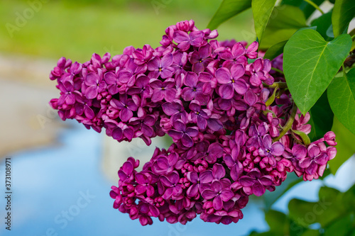 Beautiful lilac purple flowers blooming in the garden