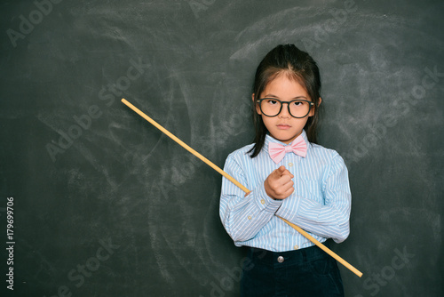 beautiful little teacher pointing someone rebukes