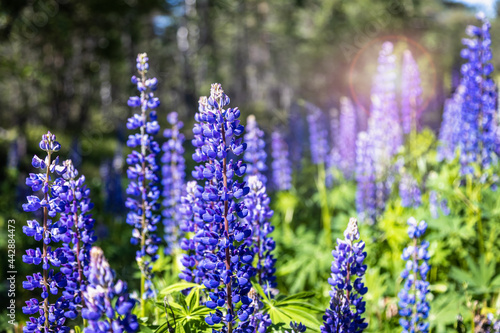 beautiful lupin flowers grow in the forest thicket