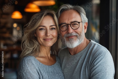 beautiful, happiness, 2, wall, adult, hair, holding, husband, mid, smiling, male, embracing, portrait, blue, standing, attractive, cheerful, waist, looking, up, background, senior, people, confidence, man, love, family, lifestyle, bonding, woman, candid, affectionate, couple, grey, real, together, modern, wife, posing, trust, caucasian, leaning, mature, satisfaction, female, photogenic